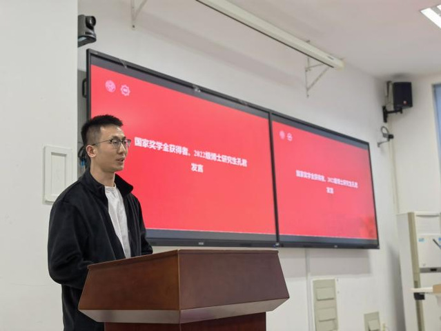 研究生获奖代表孔君和本科生获奖代表杨轩溥在现场同大家分享了在学习、科研生活中的经验与感悟,在坐得住科研冷板凳的同时,也要充分利用学院为大家提供的广阔平台,不断丰富充实自己的学识与见识,才能在科研的道路上走得更远。