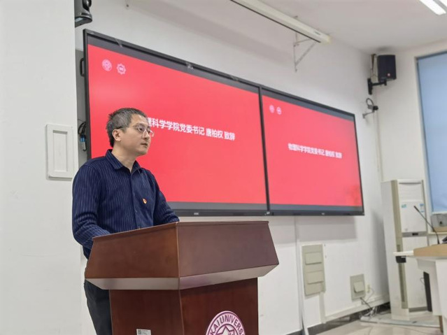最后,学院党委书记唐柏权对本次荣誉典礼进行总结,对获奖学生表示祝贺,肯定了他们的努力与付出,同时也对全体学生提出了期望,希望大家以获奖同学为榜样,传承“南开学风堪称一流”的优良传统,脚踏实地、努力学习,同时鼓励积极创新、不断探索,为个人成长和学院发展努力拼搏。