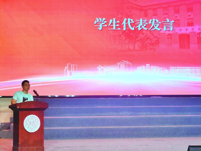 本科生老生代表2023级物理伯苓班叶彦希结合自己在南开物理的学习生活感悟,告诉学弟学妹们要夯实基础、明确方向、共同努力,鼓励同学们既要保持热爱,又要直面挑战,努力在物理科学领域绽放光彩。研究生老生代表2024级理论物理专业博士生马恩锁讲述了自己在南开的科研和成长的经历,希望同学们珍惜美好时光,磨砺意志、锻炼本领,做意气风发、有真才实学的新南开人。