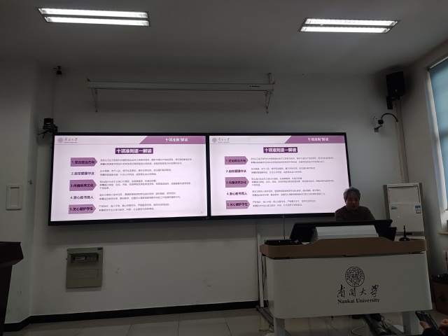 之后,学院开展师德师风建设推进会,张国权院长做了题为“弘扬教育家精神 推进师德师风建设”主题报告,并带领全体教职工学习《新时代高校教师职业行为十项准则》,深入解读相关条款,强调各位老师要自觉弘扬教育家精神,做好立德树人的根本任务。